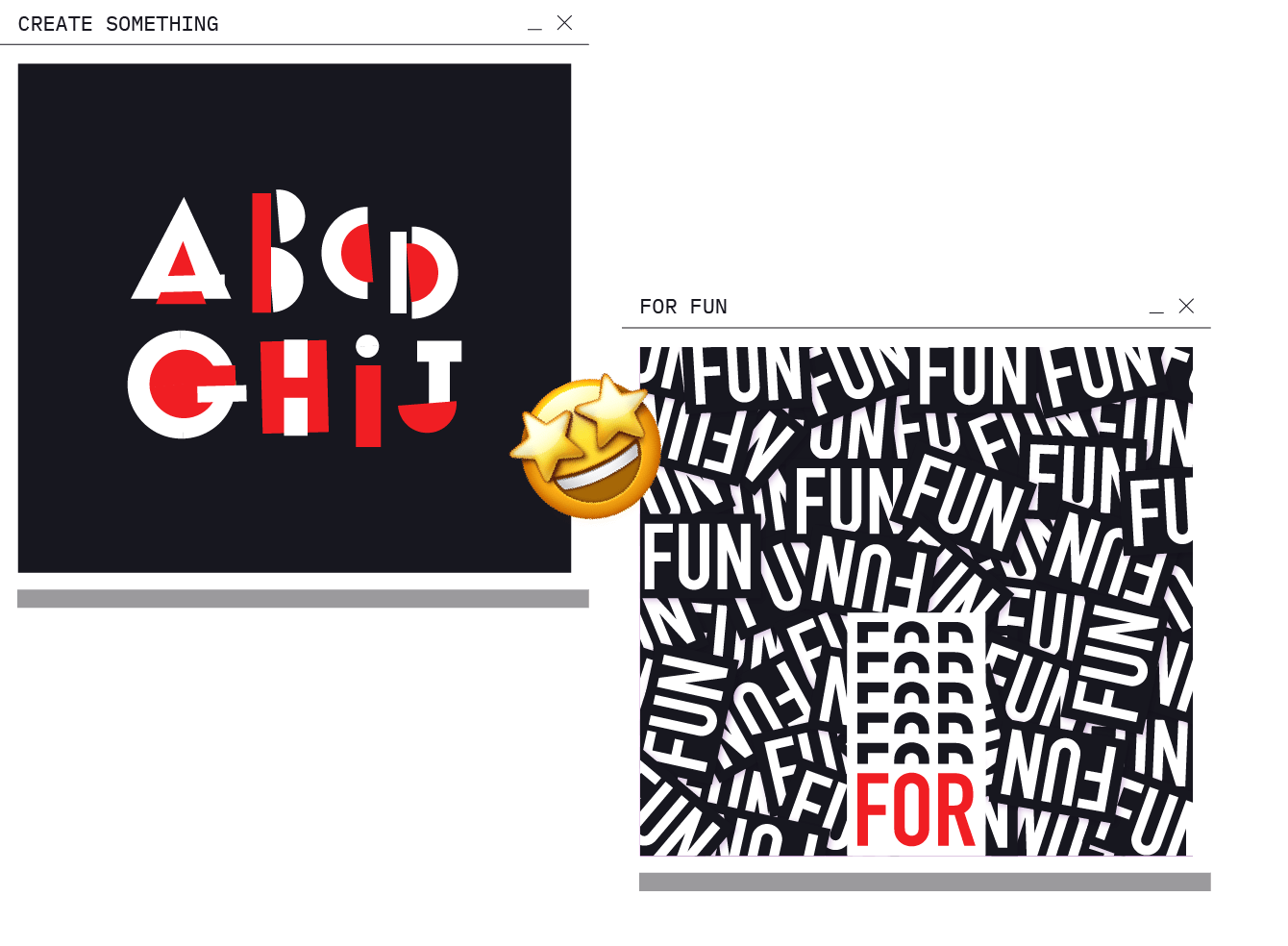 Я думал, что научусь подбирать шрифтовые пары и настраивать кернинг, а по итогу получил кое-что получше. Лагерь учит не воспринимать шрифт утилитарно, а видеть графические качества каждого символа, воспринять его, как самостоятельный элемент композиции, не гнушаться мять, рвать, выворачивать его наизнанку, составлять новые графемы из его составных частей. От вариантов использования шрифта в качестве композиционного инструмента у меня в голове не раз мелькала мысль «А что, так можно было что ли?».